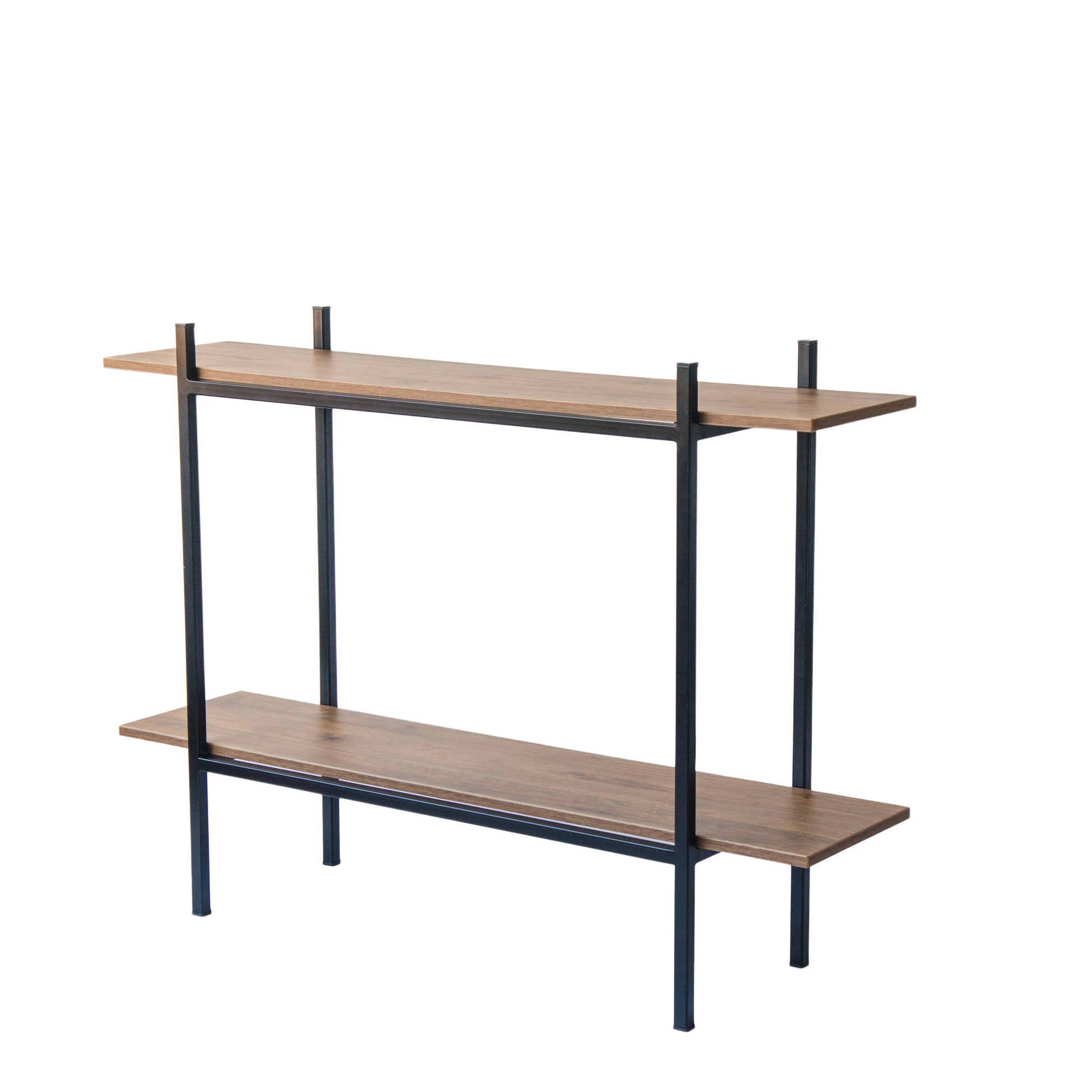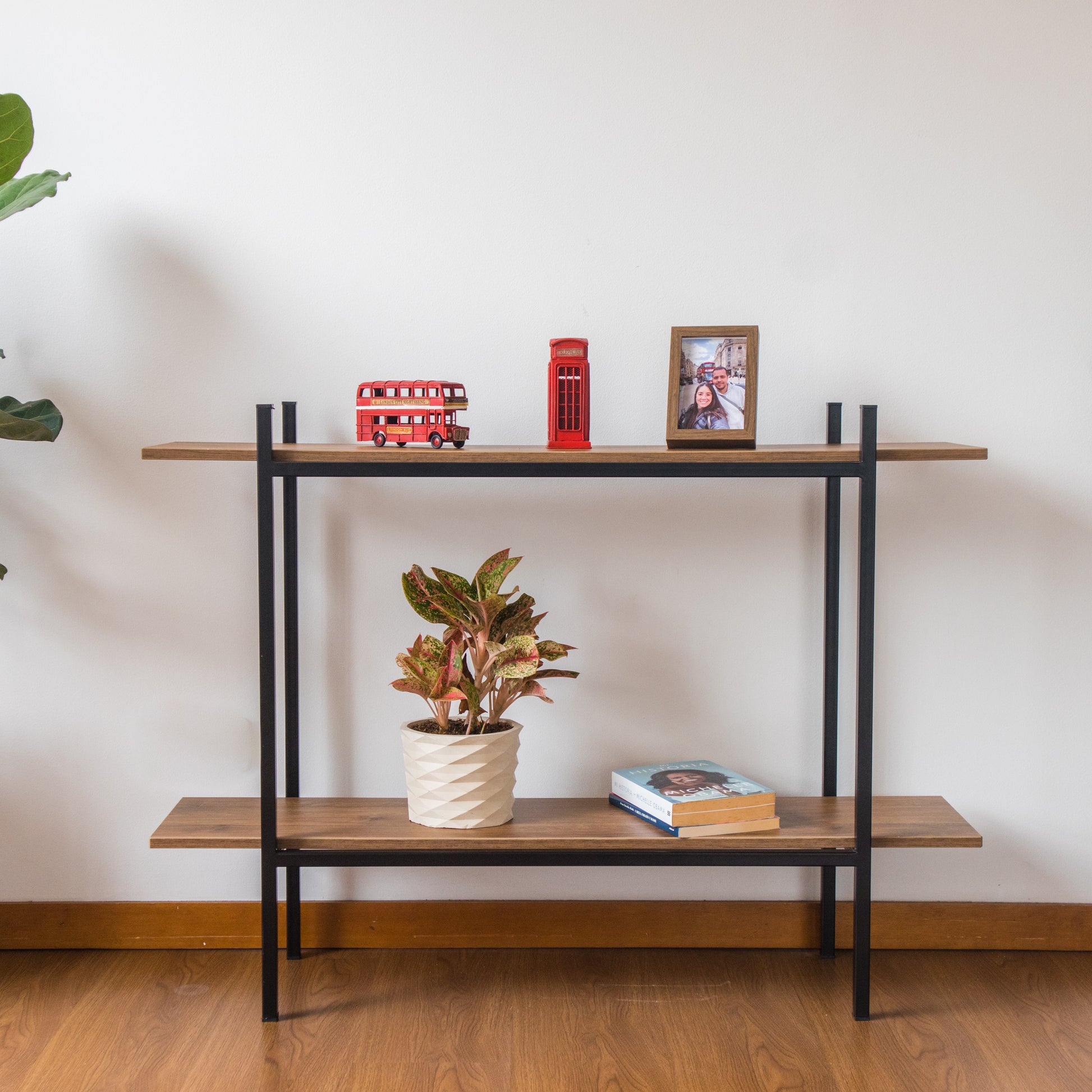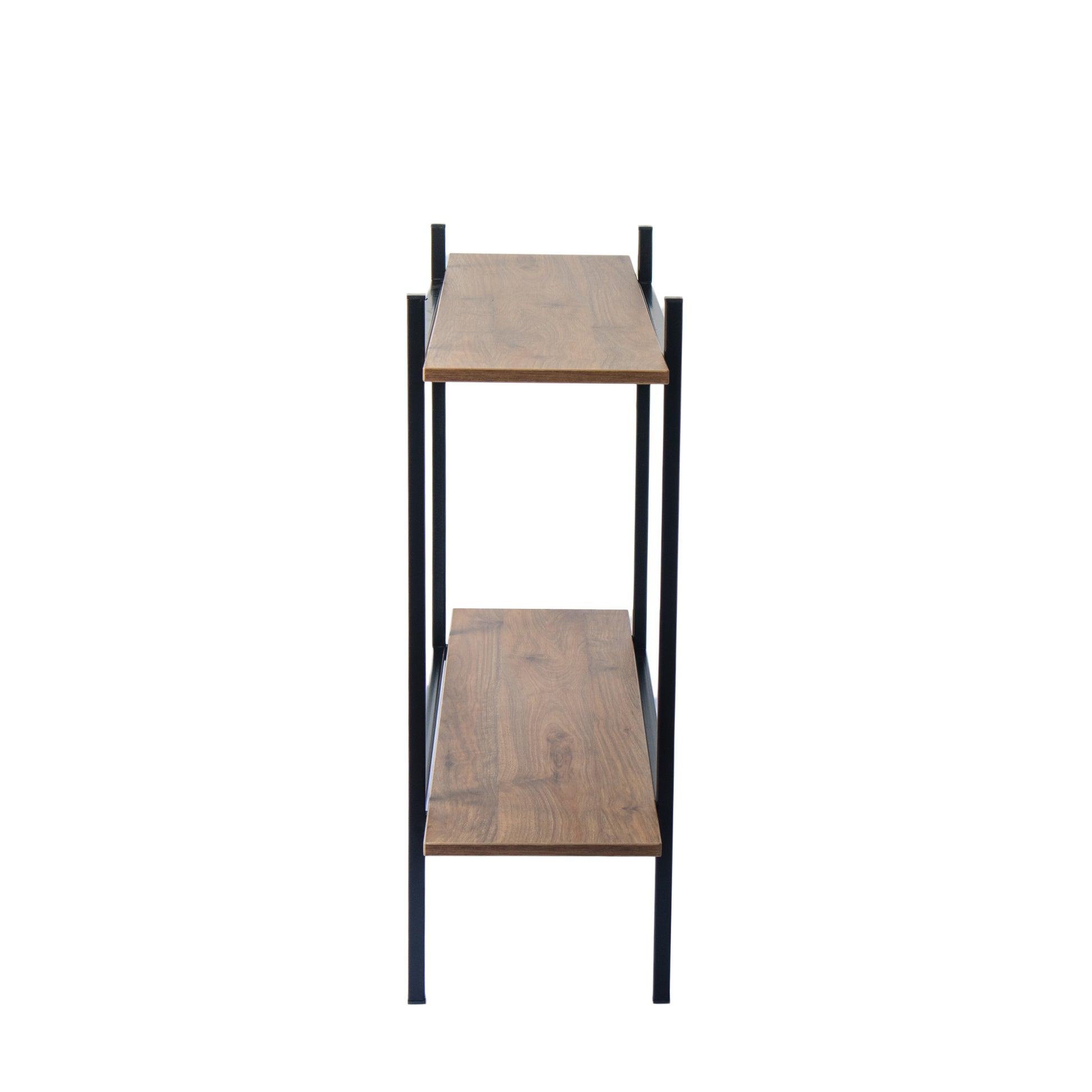 Fabricada en tubería de hierro cuadrada de ¾”, con dos niveles en melamina importada RH de 15 mm de espesor y acabado en pintura electrostática negro mate liso, que garantiza resistencia, durabilidad y un acabado de alta calidad.