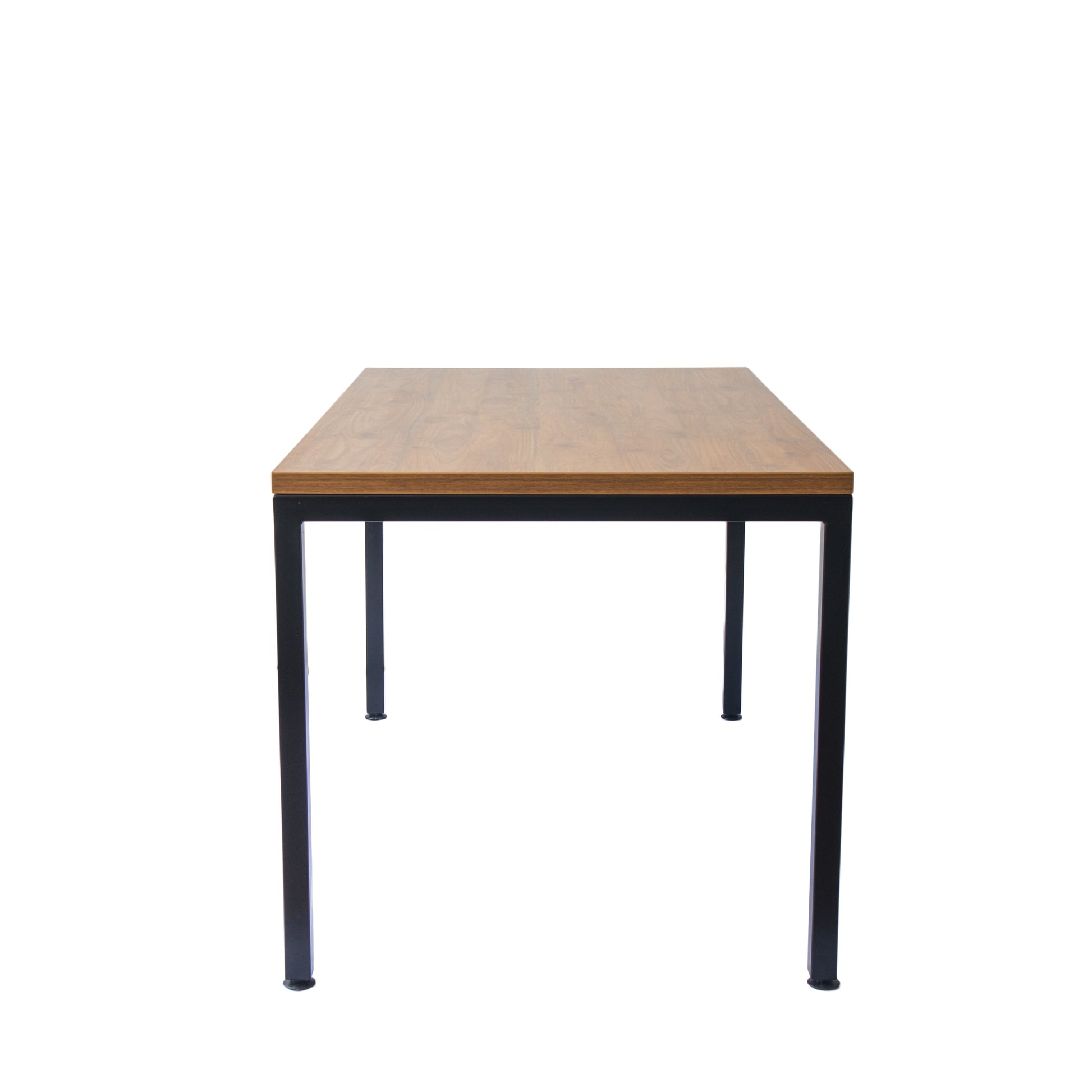 Fabricada en tubería de hierro de 1 ½” x 1 ½”, con tablero en melamina importada RH y perfiles de 30 mm que garantizan rigidez y durabilidad. Su acabado en pintura electrostática negra le aporta un estilo sobrio y una calidad que se nota en cada detalle.