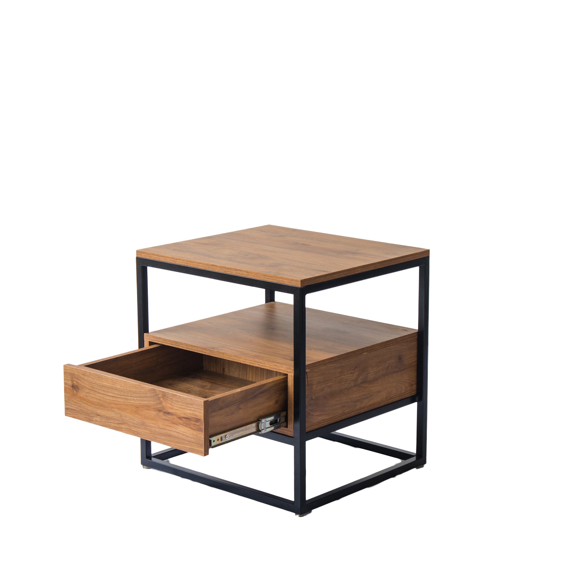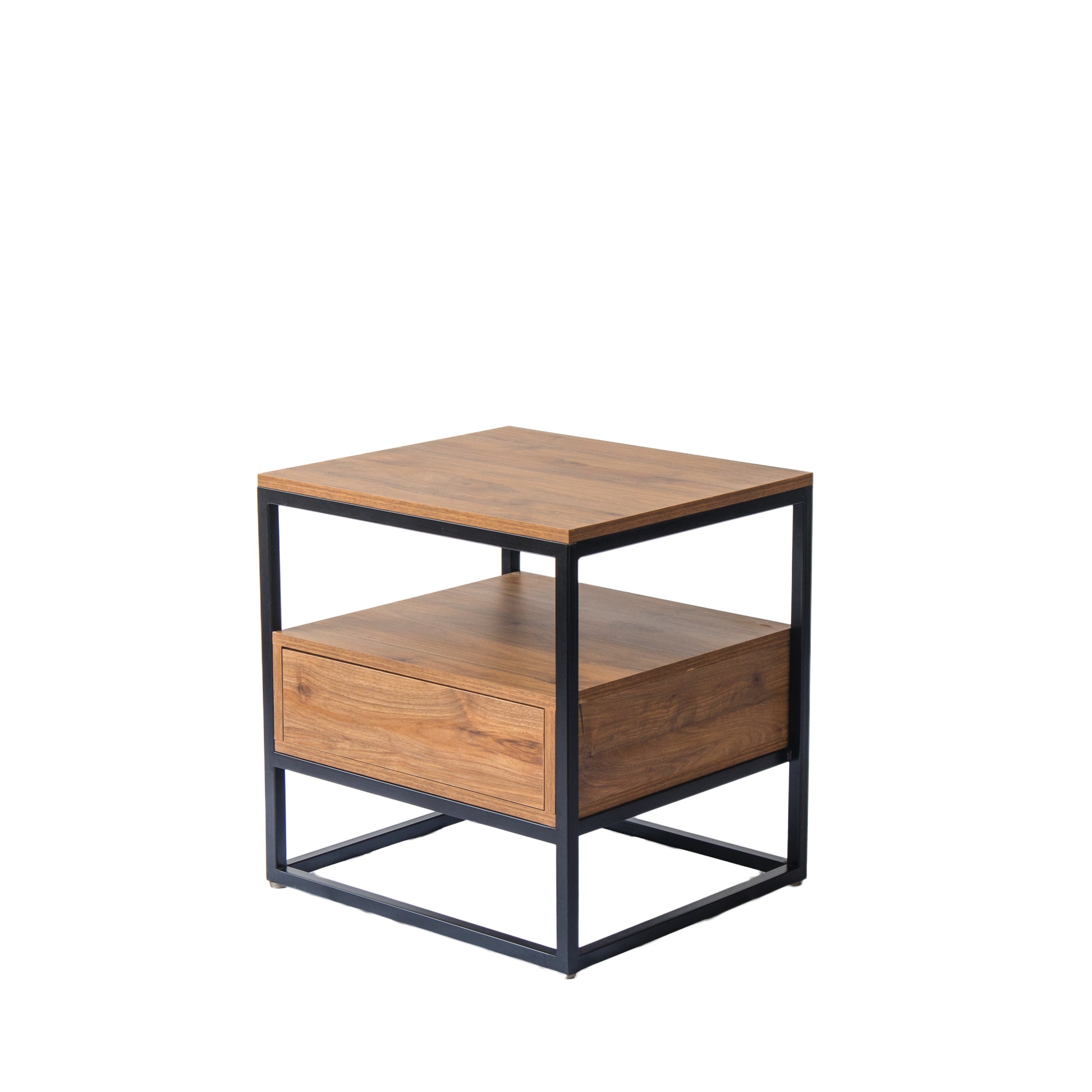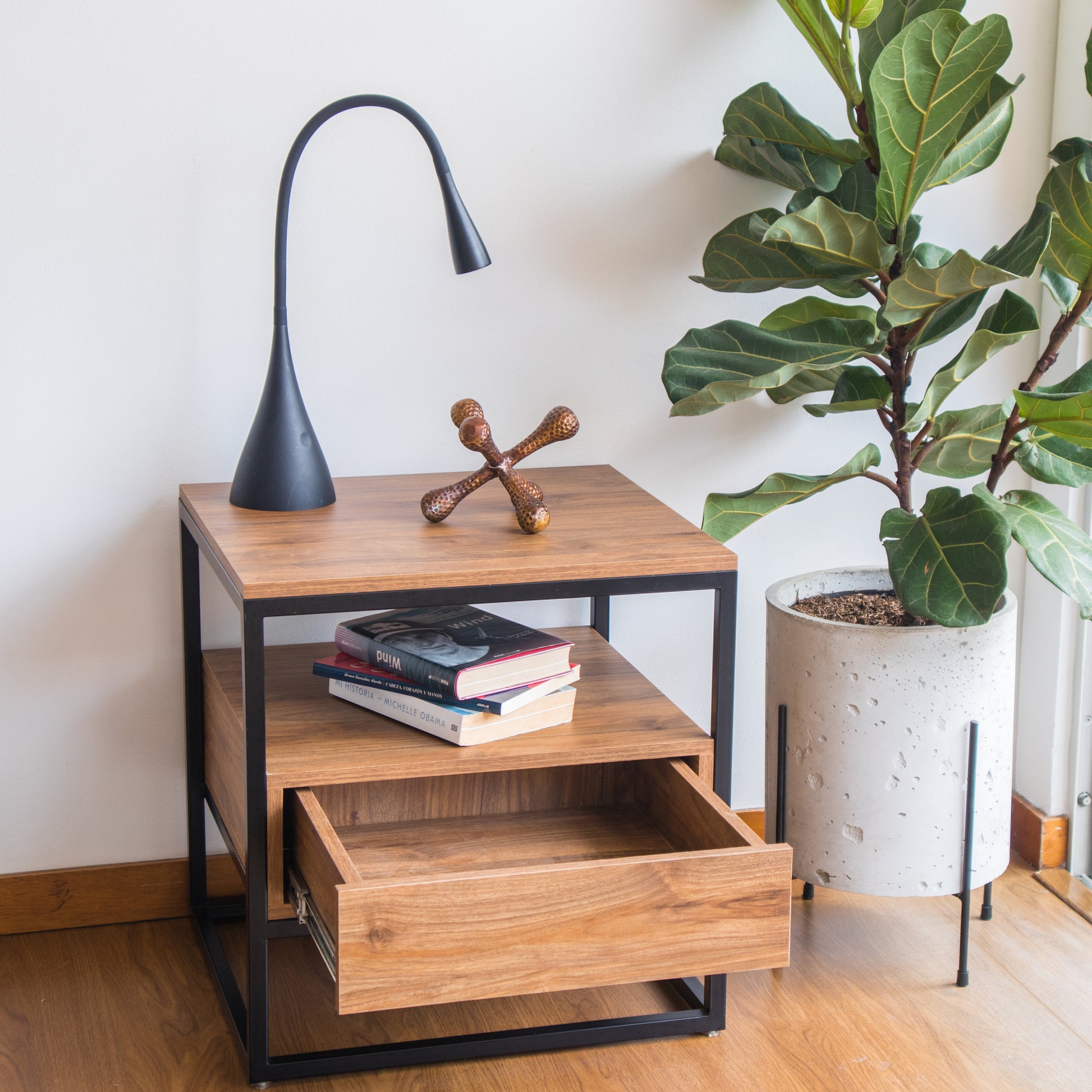 Fabricada en tubería de hierro cuadrada de ¾”, cuenta con un cajón amplio con riel de cierre lento y estructura en melamina RH de 15 mm de espesor. Su acabado en pintura electrostática negro mate resalta la calidad y los detalles que distinguen cada pieza de Ferrum.